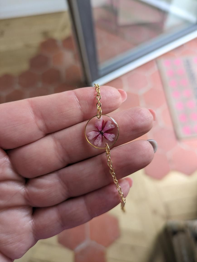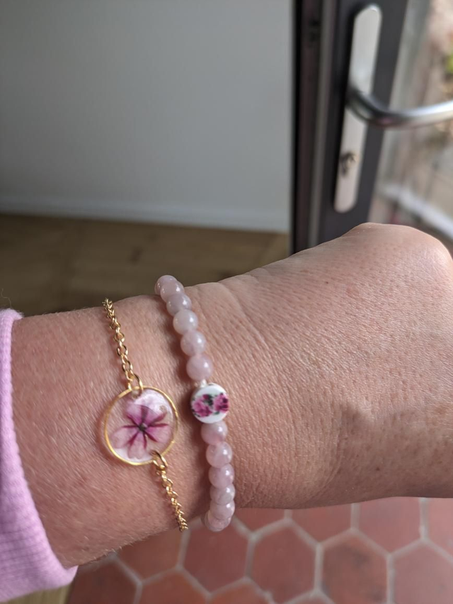 Simplicité pour ce délicat bracelet réglable doré et sa petite fleur séchée 🩷🌸💜