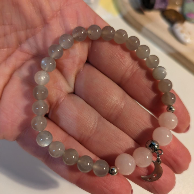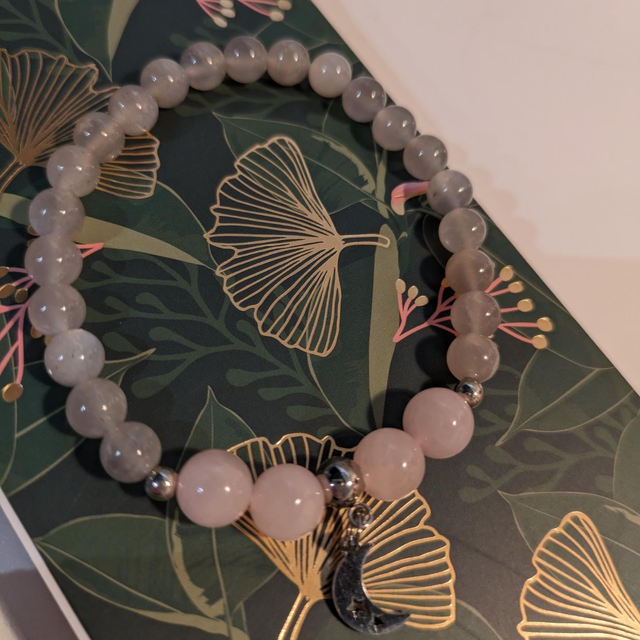 Bracelet pierre de lune grise et quartz rose 🩶🩷
