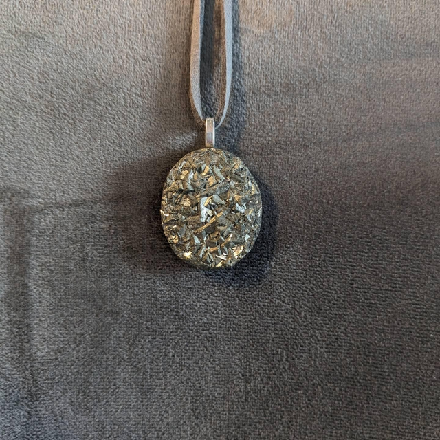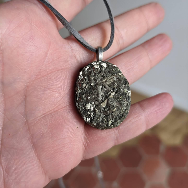 Pendentif en Pyrite avec cordon double en cuir gris 🩶 (possibilité de mettre une chaîne).