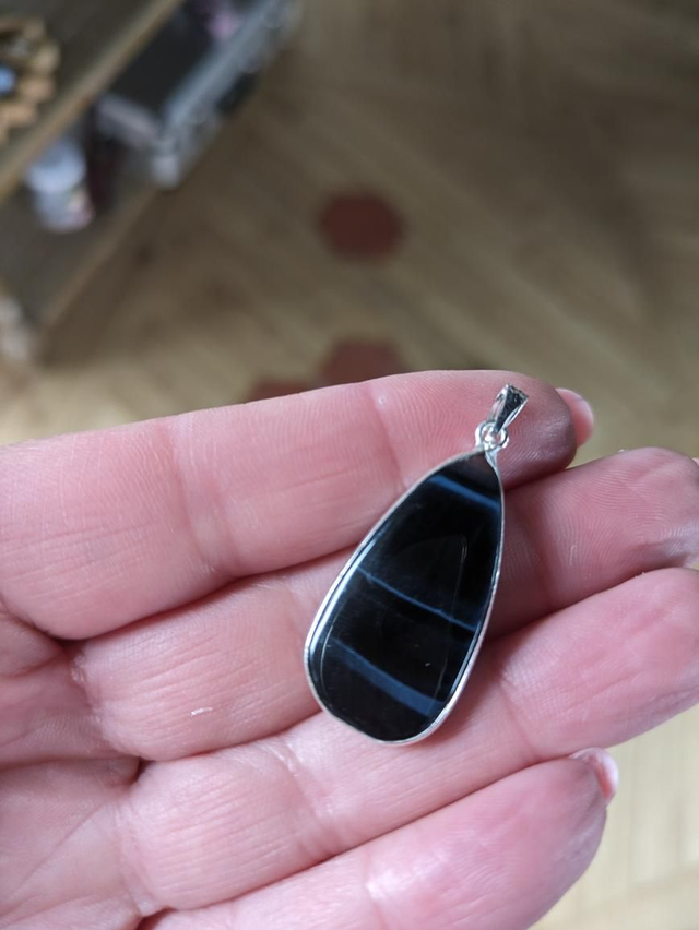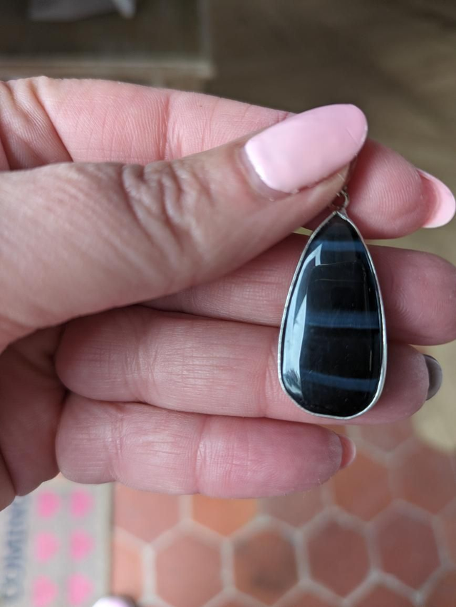 Magnifique pendentif en Œil de Faucon. Plaqué argent. Sublimes reflets 🤩🖤💙